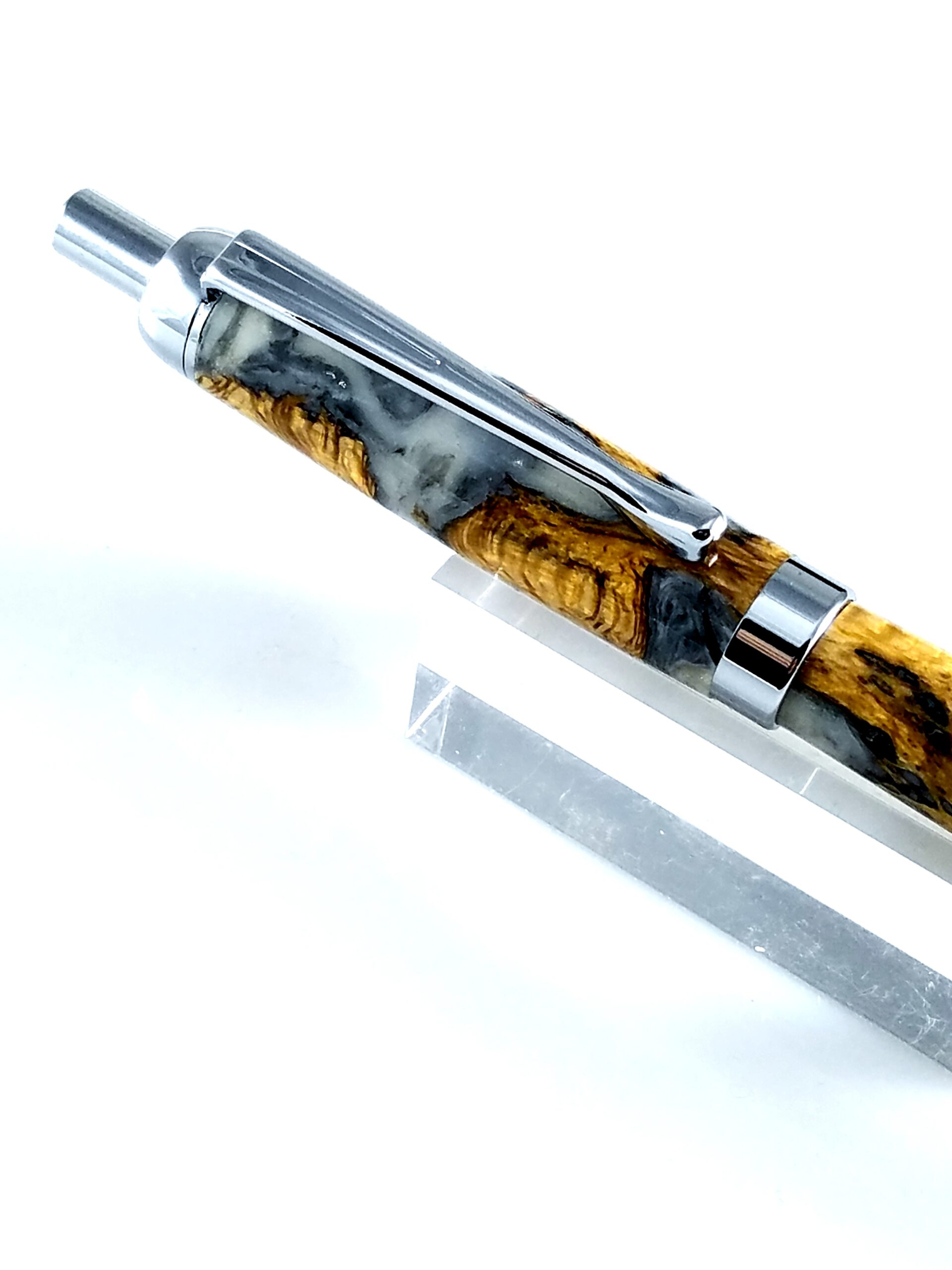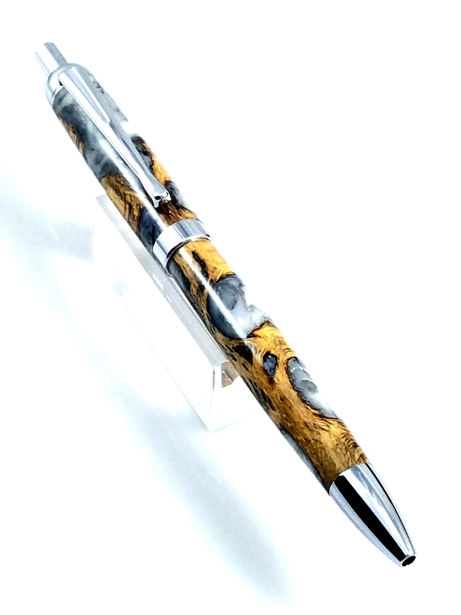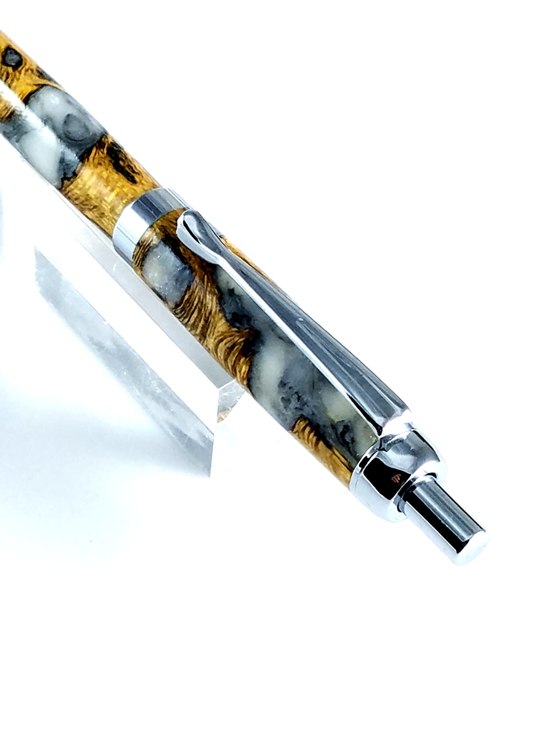 Created from the ground up, this pen features a German made mechanism. With a specially designed click mechanism, the Tempest ballpoint pen provides at long last, a click ballpoint with a reliable and trustworthy clicker, that keeps on working. Beautifully crafted in Cholla cactus cast in Alumilite. This will be your new favorite click pen frame!